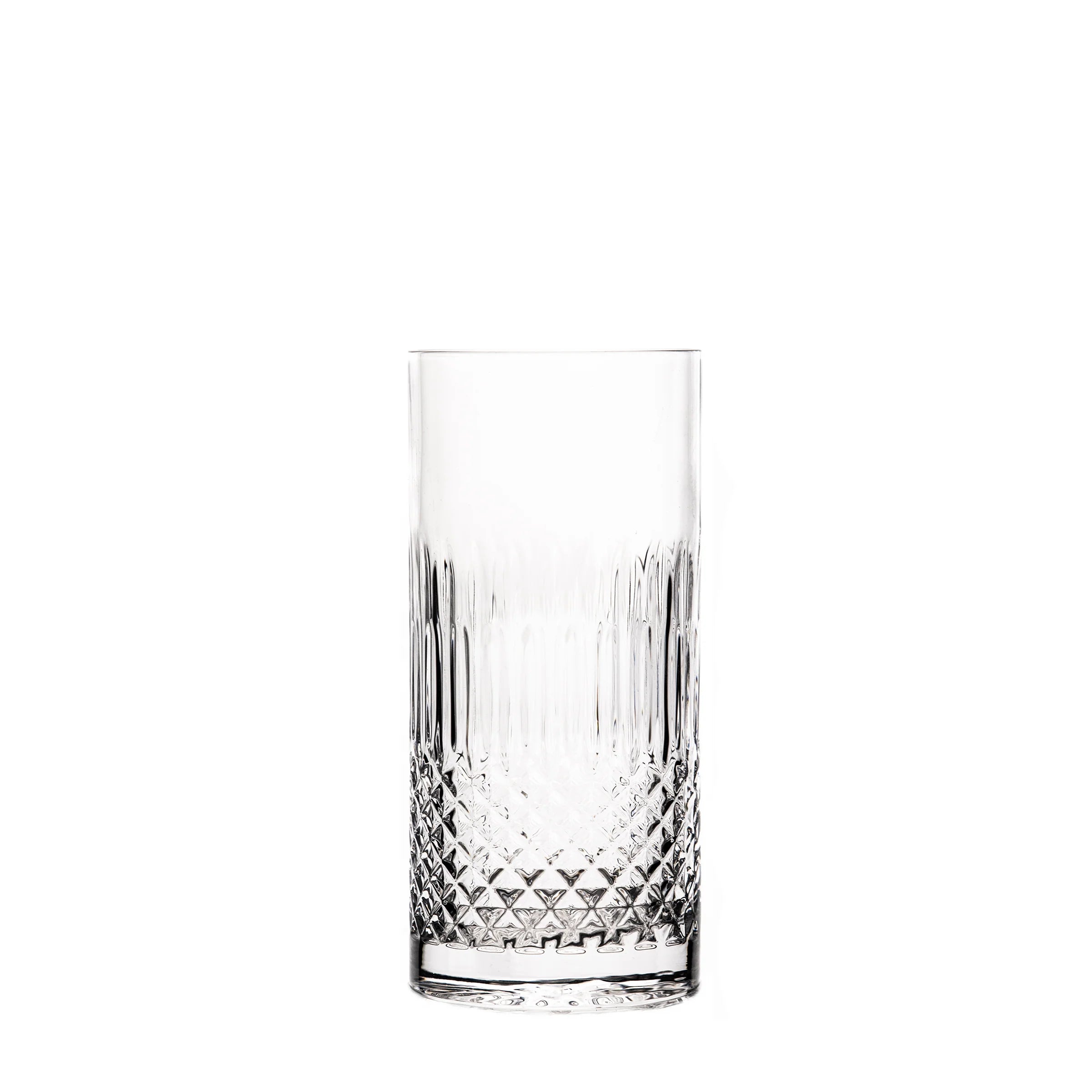 Featuring a distinctive diamond-cut pattern, the Diamante beverage highball glasses adds refined texture and visual impact to any table setting or home bar. Its faceted design not only catches the light beautifully but also provides a comfortable grip and balanced feel in the hand.