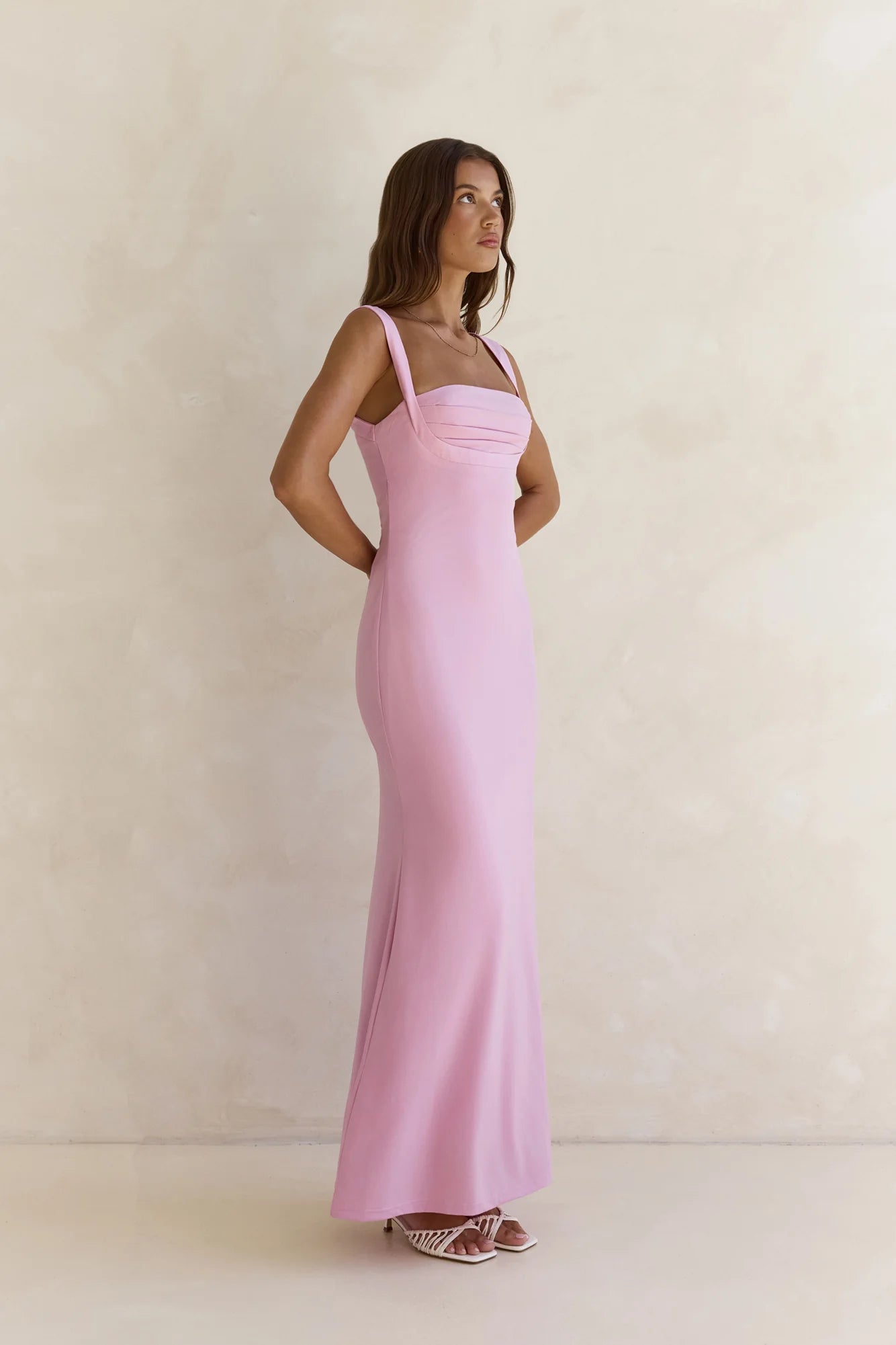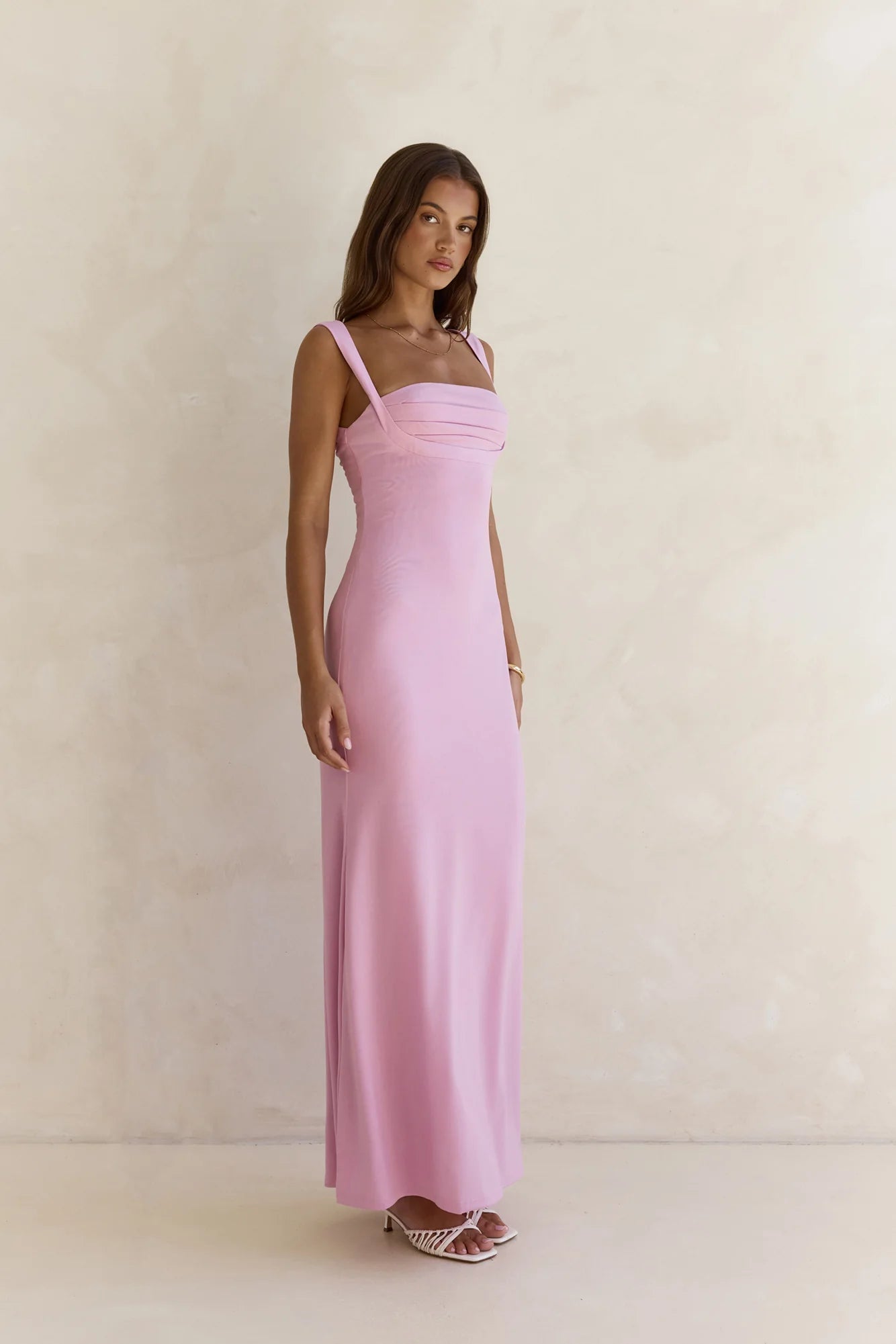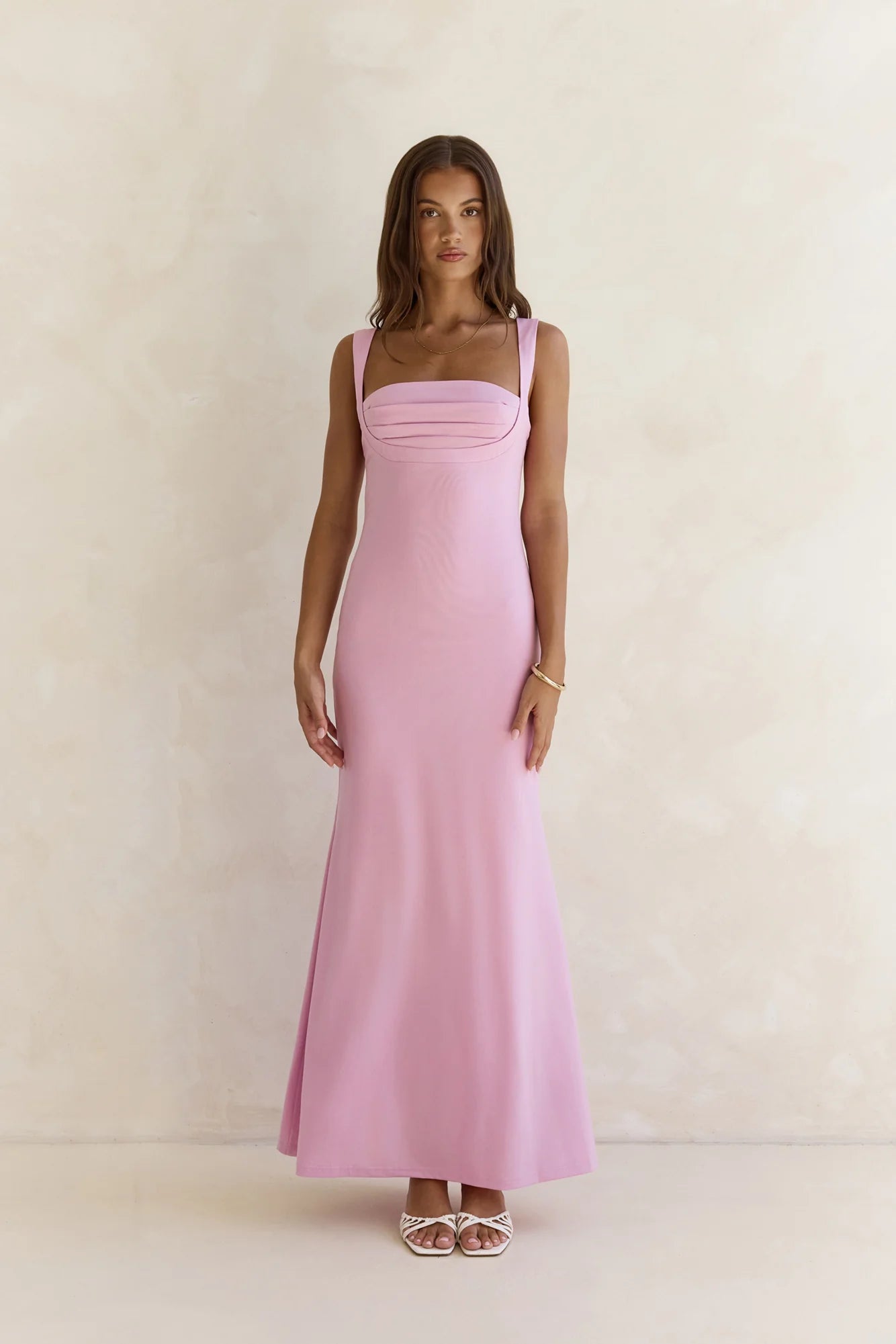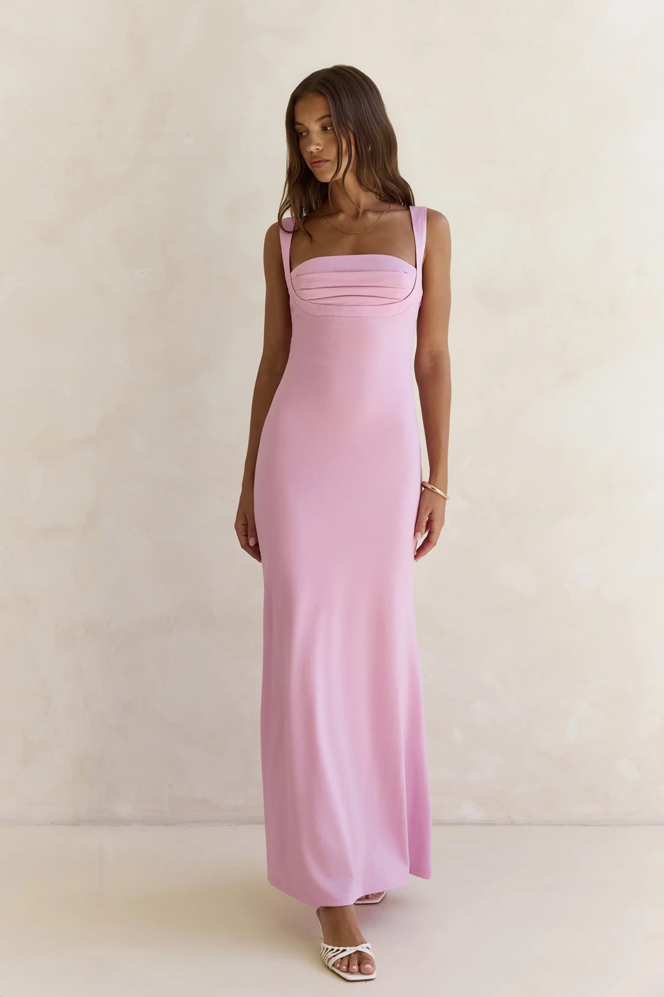 Channel elegance and class with the Spring In The Clouds Maxi Dress, a dreamy silhouette perfect for your next event under the sun. A fit-and-flow silhouette, this dress features a statement scoop back and gathered detailing at the bust. Style with heels and jewellery.